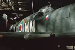 Hawker Hurricane con su cubierta de carlinga enmarcada deslizada hacia atrás -