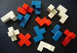 El puzle consiste en 13 cabezas policúbicas de tres colores distintos (blanco o amarillo, rojo y azul): 12 pentacubos y un tetracubo: el objetivo es ensamblar las piezas en un cubo de 4 × 4 × 4; se ha calculado que hay 19 186 formas distintas de hacerlo, excluyendo rotaciones y reflexiones.