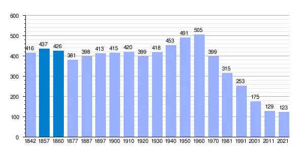 | Gráfica de evolución demográfica de Cubo de Benavente[9] entre 1842 y 2021 |