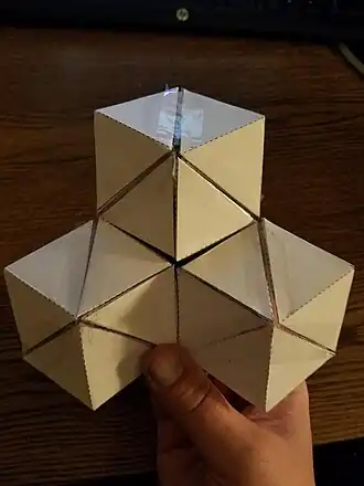 ![]() Cubo de Yoshimoto fabricado con cartulina y cinta adhesiva | ||