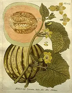 Cucumis melo, llamado comúnmente melón, es una especie de la familia de las cucurbitáceas. Domesticada hace más de cuatro mil años en la región mediterránea oriental y Asia occidental, el origen exacto de la especie silvestre es aún desconocido. Su dilatado cultivo en domesticación ha dado origen a numerosas variedades cuya producción se extiende por todas las regiones cálidas de la mayor parte del mundo con veranos secos y calurosos.[2]