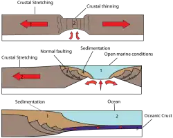 Se han identificado cinco etapas tectónicas en las cuencas brasileñas:[7]