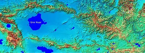 ![]() Cuenca del Uvs Nuur Ubicación en Mongolia. | ||