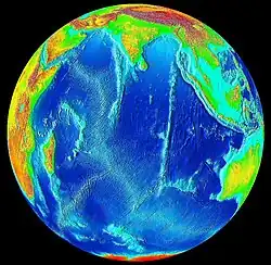 Su relieve está interrumpido por algunas montañas submarinas algunas de las cuales alcanzan a la superficie para formar islas como las del grupo de Aldabra en las Seychelles.
