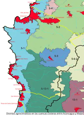 El Atlas agroclimático de Chile distingue 5 distritos agroclimáticos en la cuenca: