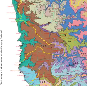 El Atlas agroclimático de Chile distingue 5 distritos agroclimáticos en la cuenca: