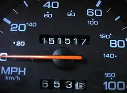 Un odómetro (del griego ὁδός hodós «camino» y μέτρον métron «medida»), coloquialmente también cuentakilómetros, es un instrumento de medición que calcula la distancia total o parcial recorrida por un objeto o cosa en la unidad de longitud en la cual ha sido configurado (metros, millas). Su uso se ha generalizado debido a la necesidad de conocer distancias, calcular tiempos de viaje o consumo de combustible.[1]