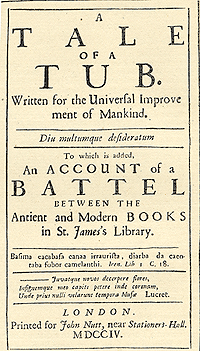 - Swift, Jonathan. Tale of a Tub, to which is added The battle of the books, and the Mechanical operation of the spirit. By Jonathan Swift. Together with The history of Martin, Wotton's Observations upon the Tale of a tub, Curll's Complete key, &c. A. C. Guthkelch y D. Nichol Smith, editores. Oxford: Clarendon Press, 2ª edición en 1958. Publicado sin ISBN.