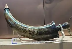 Los cuernos de pólvora también cumplían el importante propósito de mantener seca la pólvora negra. Comenzaron a ser sustituidos por matraces de cobre en el siglo XIX.[3]