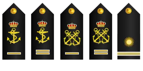 - ↑ «Currículos de la enseñanza de formación de oficiales para la integración o adscripción a la escala de oficiales del Cuerpo de Intendencia de la Armada mediante la forma de ingreso con titulación previa.». Boletín Oficial del Estado (188): 70889-70897. 7 de agosto de 2015. ISSN 0212-033X.