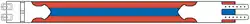 El cinturón tiene una franja horizontal azul, con hebillas de metal plata. En los años 1960 las piezas de cuero fueron pintados de blanco.