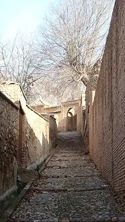 Hasta mediados del siglo XX, no existía conexión directa entre Alhambra y Generalife, por lo que el paso entre ambos lugares se hacía históricamente a través de la Cuesta de los Chinos. Tras dejar a la derecha las basas de la Torre de las Damas del Partal, encontramos un bastión, de época cristiana con una puerta, conocida como Puerta de Hierro. Este bastión y puerta, dan acceso a un recinto de caballerizas y a la llamada Puerta del Arrabal, bajo la Torre de los Picos, que era la salida original de los Palacios hacia el Generalife. En la margen izquierda, y casi a la misma altura, se inicia un callejón entre tapias, cerrado con cancela, que es de origen nazarí y que lleva hasta el mismo Palacio del Generalife, cruzando las huertas. Este camino, se encuentra en muy buen estado de conservación.