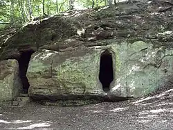 Forma tres cavernas que están vinculadas entre sí dentro de una pared de roca de piedra arenisca, cada una con su propia entrada. Se encuentra protegido como reserva natural. Las cavernas se formaron al parecer, como consecuencia de la erosión durante el período Neógeno o durante la Edad de Hielo, es decir, tienen un origen geológico.