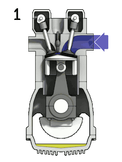 - Bastante común en los años 1990, este tipo de culata no es adecuada para los estándares de rendimiento y anticontaminación de principios de la siglo XXI