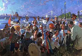 - ↑ Catriona Kelly, "Riding the Magic Carpet: Children and Leader Cult in the Stalin Era", Slavic and East European Journal, 2 (2005) p. 199.