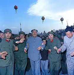 En 1957, Mao lanzó la Movimiento antiderechista, que fue considerada como una continuación del Movimiento de Rectificación de Yan'an y consolidó aún más el gobierno del Partido Comunista y Mao en China continental.[15][16] Sin embargo, el Gran Salto Adelante causó decenas de millones de muertes durante la Gran Hambruna China, lo que obligó a Mao a asumir un papel semirretirado en 1962.[17][18] La reputación de Liu Shaoqi, el segundo presidente de China, creció tanto que desafió el estado de Mao.[18][19] Como respuesta, Mao lanzó el Movimiento de Educación Socialista en 1963.