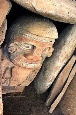 En tales lugares se han encontrado concentraciones de tumbas, algunas revestidas con grandes lajas y con sarcófagos monolíticos en su interior, cubiertas con montículos artificiales que alcanzan hasta 30 m de diámetro y 5 m de altura; estatuas de más de 4 m de altura y de varias toneladas de peso. El trabajo lítico más destacado es la llamada "Fuente de Lavapatas", un lecho rocoso de la quebrada del mismo nombre, en donde los nativos labraron una fantástica fuente ceremonial, con tres piletas y numerosas figuras serpentiformes y batracomorfas en bajo relieve, circundadas por diminutos canales por los que corre el agua de manera armoniosa. El sitio estaba consagrado al culto de las deidades acuáticas y a la práctica de ceremonias de curación.
