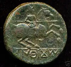Cecas celtíberas en otras zonas de España. Consultado el 21 de junio de 2010. - ↑ —/ Alberto J. Lorrio (2002). Los Celtíberos. Murcia, Universidad Complutense de Madrid. ISBN 84-7908-335-2.