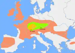 | Localización | Núcleo en Los Alpes, Centro de Europa, Francia, norte de España, islas británicas y parte del este de Europa | |
