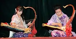 Entre los instrumentos musicales tradicionales se incluyen: brass se (tipo de triángulo), hne (tipo de oboe), bamboo wa, saung (arpa en forma de bote), pat waing (círculo de 21 tambores) y kyi waing (círculo de gongs).[1]