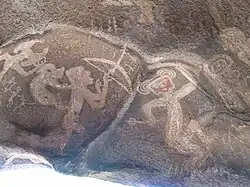Asociada a la cultura de Aguada, fuera de la región seca, se encuentran dos cuevas con pinturas rupestres en las cercanías de Icaño (Catamarca), presumiblemente campamentos estacionarios de recolectores de cebil.[39] A principios del siglo XXI se encontraron varias cuevas más, conocidas como las cuevas de Oyola, también con pinturas rupestres.[40]