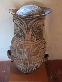 Otra fase cultural muy temprana –anterior al comienzo de nuestra era– es la cultura Vaquerías, en el valle de Lerma, en que se notan influencias de la cultura de San Francisco, caracterizada por jarros semicilíndricos y recipientes modelados que representan figuras o cabezas humanas pintadas con motivos geométricos, generalmente líneas en zigzag. Su cerámica es polícroma, y se han encontrado restos de piezas de este estilo en sitios tan lejanos como el oeste catamarqueño, la Puna y los valles Calchaquíes; probablemente hayan llegado hasta esos destinos por medio del comercio.[27]