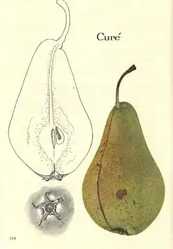Pera de Cura (en Francia su país de origen 'Curé') es una variedad cultivar de pera europea Pyrus communis.[2] Esta pera está cultivada en la colección de la Estación Experimental Aula Dei (Zaragoza) designada como: 'de Cura'.[3] Esta pera también está cultivada en diversos viveros entre ellos algunos dedicados a conservación de árboles frutales en peligro de desaparición.[4][5] Esta pera está muy difundido su cultivo en España, aunque es originaria de Indre (Francia).[6] En España tuvo su mejor época de cultivo comercial en la década de 1960, y actualmente en menor medida aún se encuentra.[7][8]