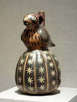 Cerámica cultura nazca con ave sobre cactus.