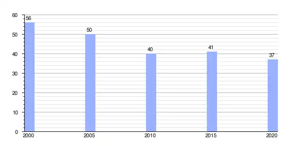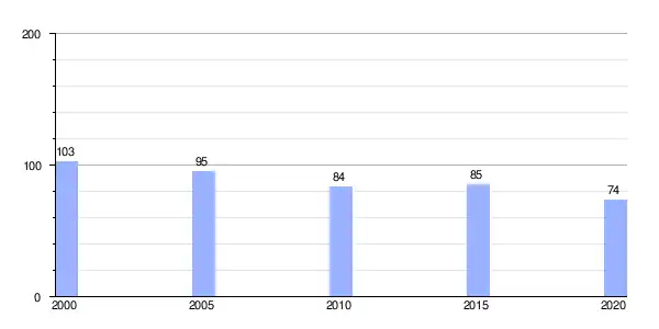 | Gráfica de evolución demográfica de Curbián (parroquia) entre 2000 y 2020 |