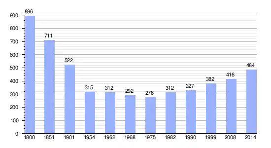 Los datos demográficos contemplados en este gráfico de la comuna de Curcy-sur-Orne[4] se han cogido de 1800 a 1999 de la página francesa EHESS/Cassini, y los demás datos de la página del INSEE.[5]