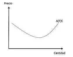 - Costo total promedio (ATC por sus siglas en inglés) = Costo total/Q