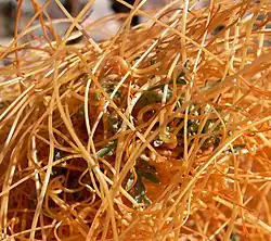 • Cabellos de Ángel (Chile), bejuco fideo (Cuba), hilo de oro (Venezuela), tzacatlscalli (México), tripas del diablo (México), zacatascal (México).[5]