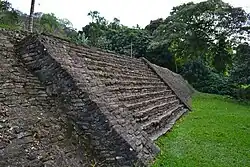 Esta estructura fue remodelada en tres ocasiones; la última, en 1400, tiene influencia azteca. Sobre la estructura se encontró un monolito de dos metros de altura.