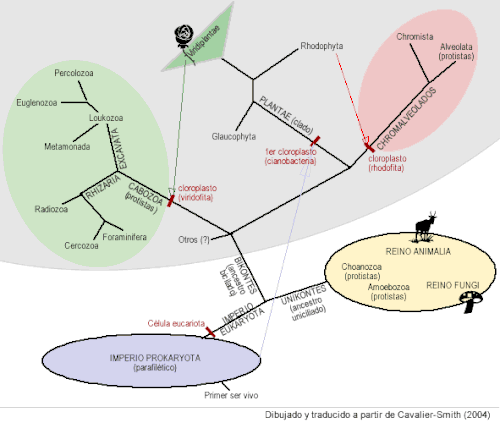 - ↑ Cavalier-Smith, T (2002-01). «Chloroplast Evolution: Secondary Symbiogenesis and Multiple Losses». Current Biology 12 (2): R62-R64. ISSN 0960-9822. doi:10.1016/s0960-9822(01)00675-3. Consultado el 30 de marzo de 2020.