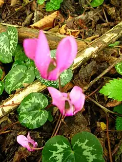 - ↑ «Cyclamen purpurascens». Tropicos.org. Missouri Botanical Garden. Consultado el 20 de noviembre de 2013.