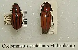 Cyclommatus scutellaris es una especie de coleóptero de la familia Lucanidae.
