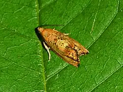 Cydia amplana es una especie de polilla del género Cydia, tribu Grapholitini, familia Tortricidae.[1] Fue descrita científicamente por Hübner en 1799.[2]