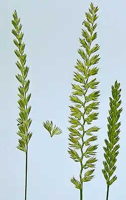 Es una planta herbácea vivaz, de tallo erguido, que alcanza los 80 cm de altura. Hojas estrechas de (2-3 mm), brillantes por el haz y mates por el envés, con lígula corta y truncada. La inflorescencia en panícula espiciforme, alargada, unilateral y densa. Raquis plano en un sentido y en zigzag en el sentido contrario. Espiguillas dimorfas; las fértiles con 3-7 flores. Glumas más cortas que las flores. La inferior provista de una arista más corta que ella.[1] Florece avanzada la primavera y durante parte del verano.