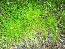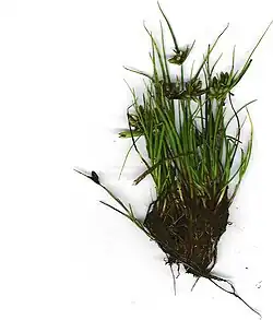La planta alcanza un tamaño de 10 a 30 centímetros de altura, con una forma arqueada delicada. [ 1 ] La floración se produce en primavera y verano. Se relaciona con el papiro ( Cyperus papyrus ), también en la familia Cyperaceae.