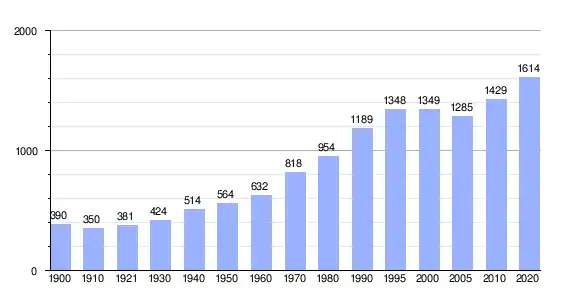 | Gráfica de evolución demográfica de Déxtho de Victoria entre 1900 y 2020 |