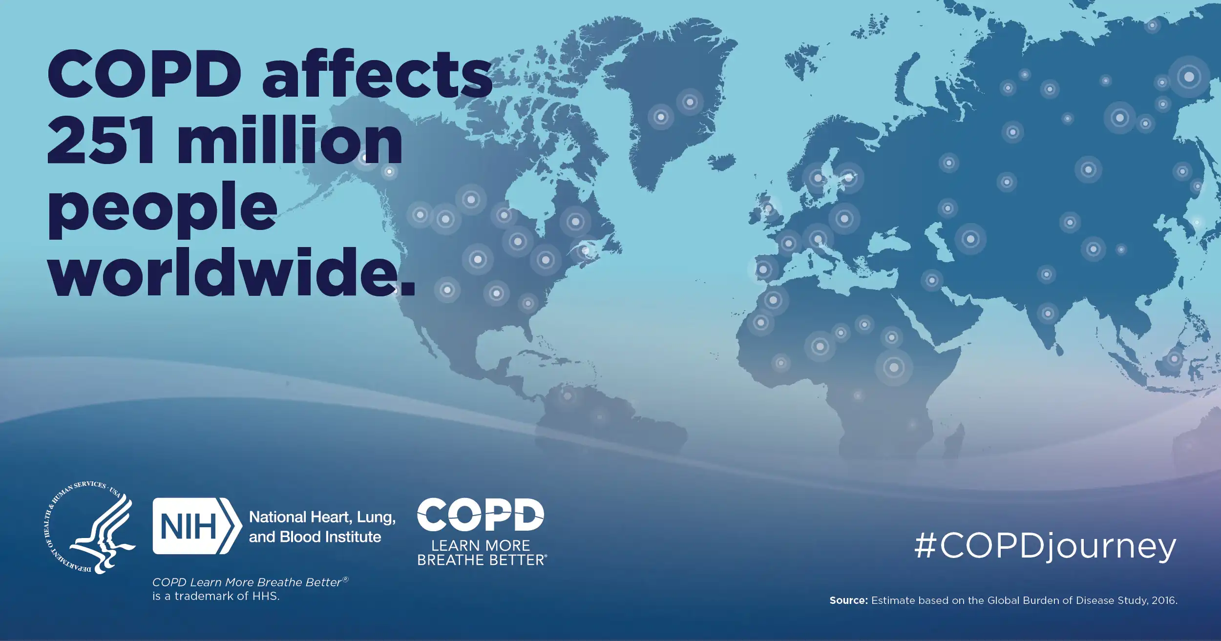 El Día Mundial de la Enfermedad Pulmonar Obstructiva Crónica (EPOC o COPD por sus siglas en inglés) fue proclamado por la Iniciativa Global para la Enfermedad Pulmonar Obstructiva Crónica[1] (GOLD, por sus siglas en inglés) en 2002. Esta proclamación se realizó con el objetivo de aumentar la conciencia sobre la EPOC, compartir conocimientos y discutir formas de reducir la carga de esta enfermedad en todo el mundo. La organización de este día involucra a profesionales de la salud y grupos de pacientes con ella, quienes colaboran para resaltar la importancia de la prevención, el diagnóstico temprano y el tratamiento adecuado de esta afección respiratoria crónica.[2]