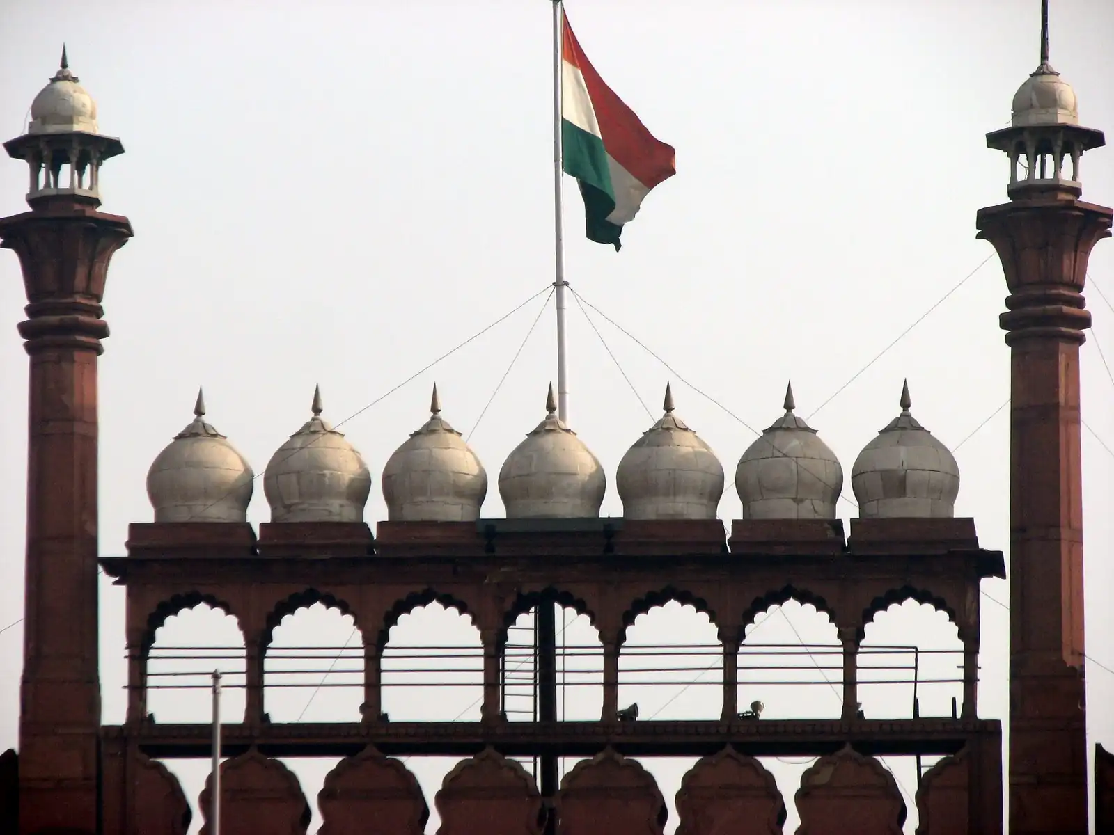 ![]() La bandera de India izada en el Fuerte rojo de Delhi. | ||