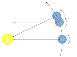 Otra manera de entender la misma cuestión es que si el planeta en un año da X vueltas sobre sí mismo, el Sol culmina una vez menos. Como la órbita no es circular y rige la segunda ley de Kepler o ley de las áreas hay que hablar de día solar medio pues el movimiento real del planeta sobre la órbita no es siempre el mismo y por tanto el día solar tiene una duración variable. Apliquemos lo dicho para: