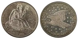 - ↑ Steve Roach (14 de junio de 2016). «1838 Gobrecht dollar part of complex collecting area» (en inglés). Coinworld.com.