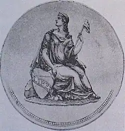 Patterson propuso en una carta fechada el 1 de agosto de 1835 que Sully creara una figura de la Libertad sentada para el anverso, sugiriendo que «la figura estuviera en una postura sentada, por ejemplo, sobre una roca».[8] También sugirió que la figura debería sostener en su mano derecha un píleo encima de un poste para ser un «emblema de la libertad».[8] El historiador numismático Don Taxay señaló la similitud entre el concepto de la Libertad sentada de Patterson y los diseños que ya se utilizaban en las monedas de cobre británicas: «Libertad surgió como una Britania renovada, su tridente fue reemplazado por un bastón y un píleo».[7] En la misma carta, Patterson también le informó a Sully de su visión del reverso, que Peale llevó a cabo: «Propongo un águila volando, y elevándose en vuelo en medio de una constelación, irregularmente dispersa, de 24 estrellas que representa el número de los estados que entonces conformaban la Unión, y llevando en sus garras un pergamino con las palabras e pluribus unum».[6]