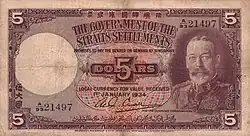 El gobierno de las Colonias del Estrecho llegó a poner estos billetes en circulación, ya que por entonces debido a la invasión japonesa se mantuvieron en cámaras y depósitos asegurados en Singapur y Penang. Cuando se evacuó Penang en diciembre de 1941, una gran cantidad de billetes de 1 y 5 dólares quedaron abandonados en sus depósitos, donde cayeron en manos de los japoneses. En Singapur, los billetes fueron destruidos, y los que quedaron se enviaron a la India por seguridad.