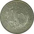 La acuñación del primer dólar de plata de Estados Unidos, conocido como el dólar del cabello suelto, comenzó en 1794 a raíz de la construcción y de la dotación de personal de la Casa de Moneda de Filadelfia. La Ley de la Moneda de 1792 exigía que las monedas de plata tuvieran una aleación del 89,2 % de plata y 10,8 % de cobre.[1] Sin embargo, los funcionarios de la ceca eran reacios a acuñar monedas con una pureza difícil de producir, por lo que se decidió emitirlas con una aleación no autorizada del 90 % de plata.[2] Esto causó que los depositantes de plata en la Casa de Moneda perdieran dinero cuando su metal era acuñado.[2] Durante el segundo año de producción del dólar del cabello suelto, se decidió que sería rediseñado.[3] Se ignora quién motivó o sugirió este cambio, aunque el historiador de numismático R. W. Julian especula que Henry William de Saussure, nombrado director de la Casa de Moneda el 9 de julio de 1795, pudo haberlo sugerido, ya que había declarado que el rediseño de la moneda estadounidense era uno de sus objetivos antes de asumir el cargo.[4] También es posible que el diseño del dólar de cabello suelto se haya suspendido debido a la fuerte desaprobación de la opinión pública.[3]