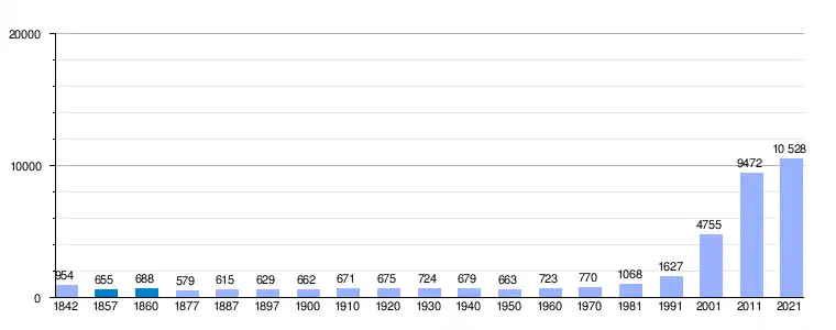 | Gráfica de evolución demográfica de Daganzo de Arriba[3] entre 1842 y 2021 |