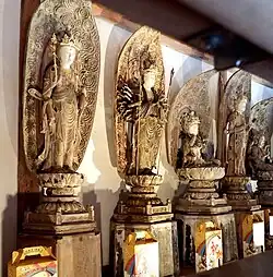 Un pasillo conecta el Salón principal y el Daishi-dō. Benzai Tenjo, Shōmen Kongō y 33 estatuas de Kannon dedicadas por seguidores de Osaka a mediados del período Edo están consagradas en este corredor. Tras el pasillo se encuentra el Goma-dō, que no es visible.[4][5]