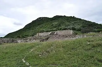 Se encuentra en la parte más alta del sitio, aparentemente tuvo usos religiosos. Es una construcción escalonada con cuatro plataformas construidas con piedras unidas con barro, dando lugar a cuatro plataformas, la más interesante es la inferior por los bajorrelieves que decoran el muro sur del cuerpo inferior se encuentra la llamada Galería de escultura monumental, cada piedra contiene una figura completa en posturas muy variadas y de mucho movimiento, de las que no hay dos iguales. De acuerdo con la hipótesis de Ignacio Bernal, representan jugadores de pelota cuya postura revela movimiento, probablemente fueron colocados durante una reconstrucción posterior de la plataforma, razón por la cual no guardan ningún orden.